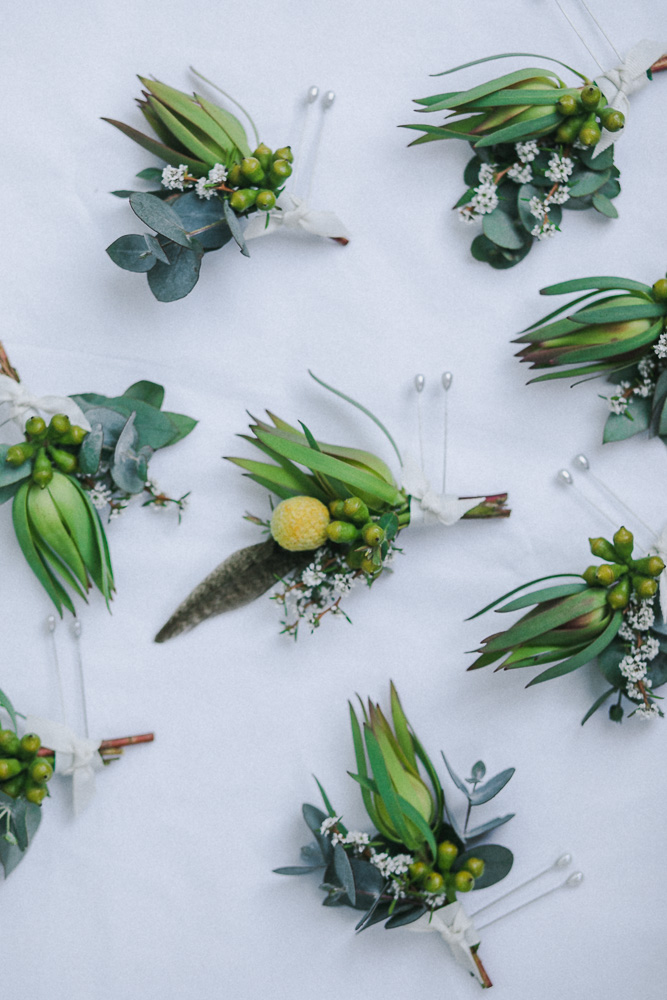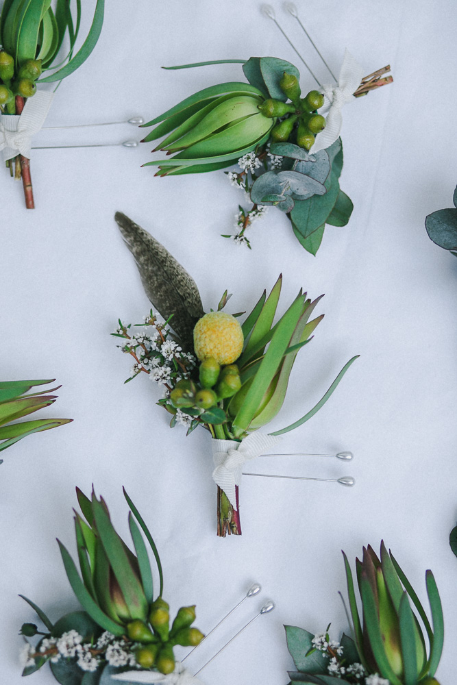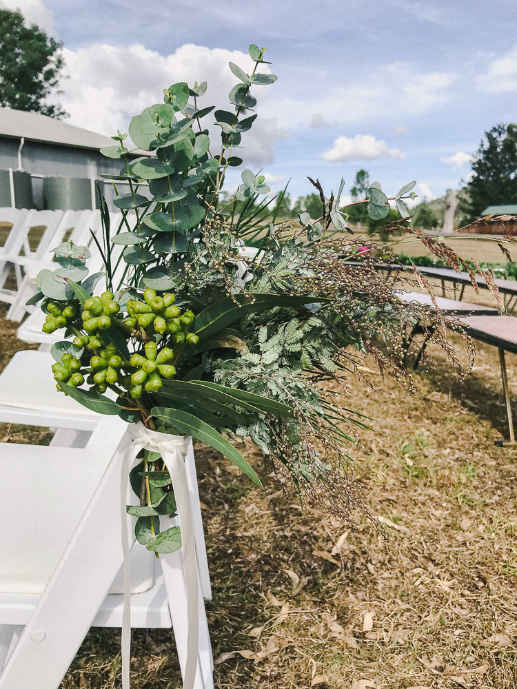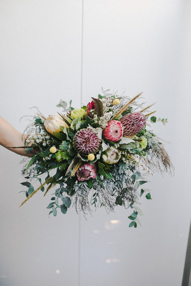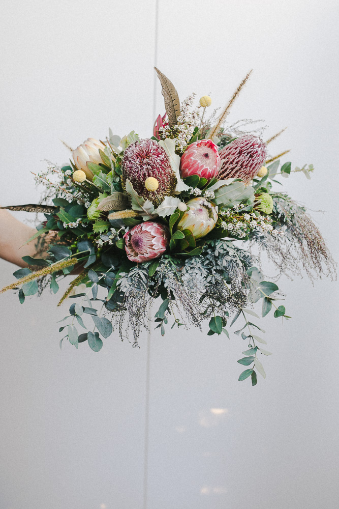 Rarely do you get pictures of everything you create as a Florist, but I factored in some time and had an assistant! It was such a hot hot day, I was so glad we were working with natives. I didn't choose the flowers that I was working with, a wholesaler did this. I was really nervous about what I was going to get but I brought some of my own little extra bits like feathers, bunny tails, billy buttons and foraged for some other touches. I think it turned out beautifully!