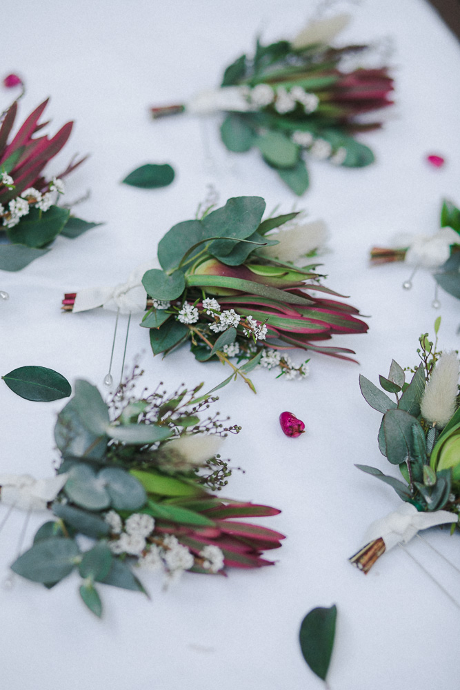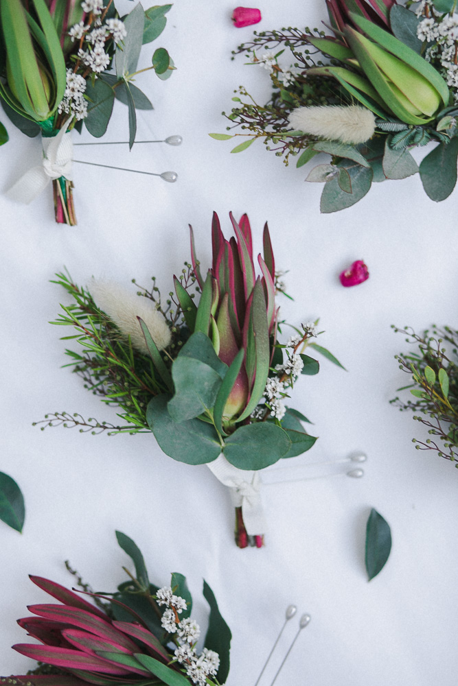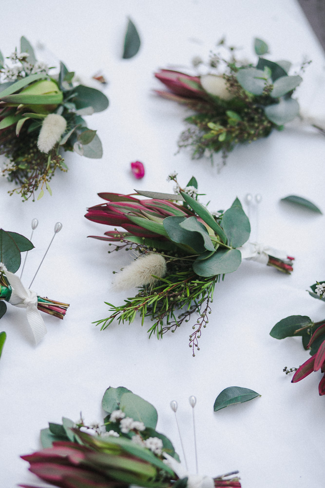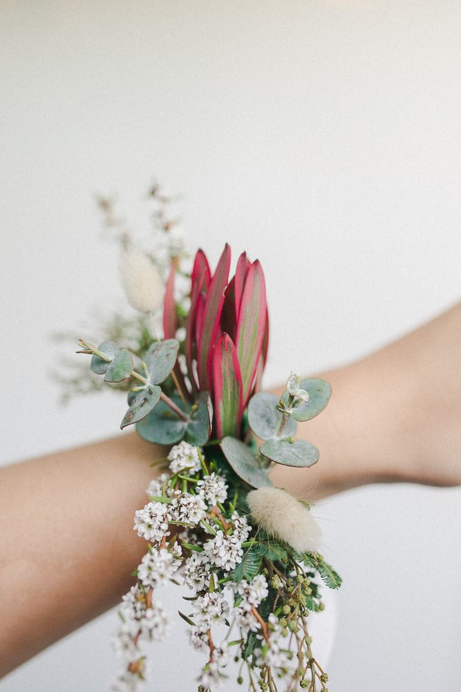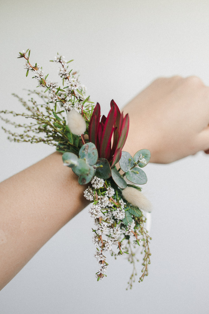 Rarely do you get pictures of everything you create as a Florist, but I factored in some time and had an assistant! It was such a hot hot day, I was so glad we were working with natives. I didn't choose the flowers that I was working with, a wholesaler did this. I was really nervous about what I was going to get but I brought some of my own little extra bits like feathers, bunny tails, billy buttons and foraged for some other touches. I think it turned out beautifully!